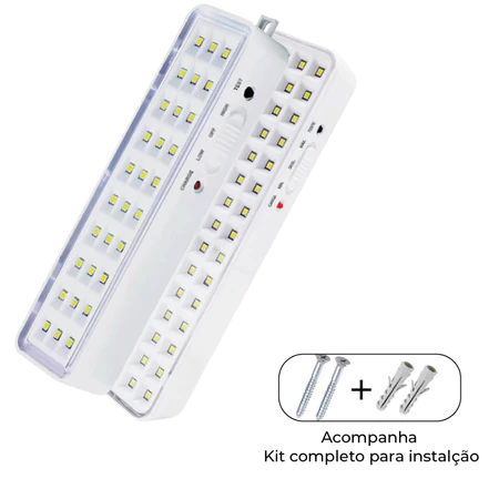 A Luminária de Emergência 60 LEDs é a solução perfeita para garantir uma iluminação segura e eficiente durante emergências. Com uma potência de 5W e luz na cor Branco Frio (6500K), ela proporciona um ambiente bem iluminado com uma excelente reprodução de cores, graças ao seu IRC superior a 70.